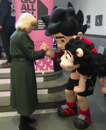 Using a bespoke three panel Beano comic strip featuring The Queen and Dennis the Menace as a story starter – a special print of which was later presented to Her Majesty by pupils – Beano’s Directors of Mischief (Mike Stirling) and Mayhem (Craig Graham) worked with local pupils from Granton Primary School and The Queen herself to create a mischievous National Year of Reading comic strip, added DC Thomson.