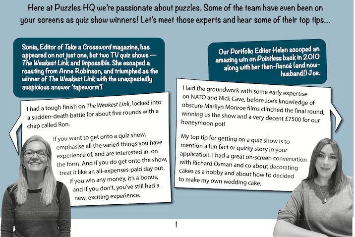 In the issue, Take a Puzzle’s experts share their top tips and winning formulas on how to become a champion, and as an homage to Countdown, Only Connect and Blockbusters, the Puzzles team have created puzzles in the style of their favourite game shows, added the publisher.