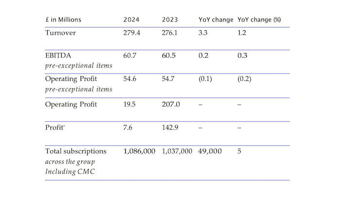 - There was sustained growth in digital subscriptions revenue in 2024, with an increase of 18% to £81.1 million.