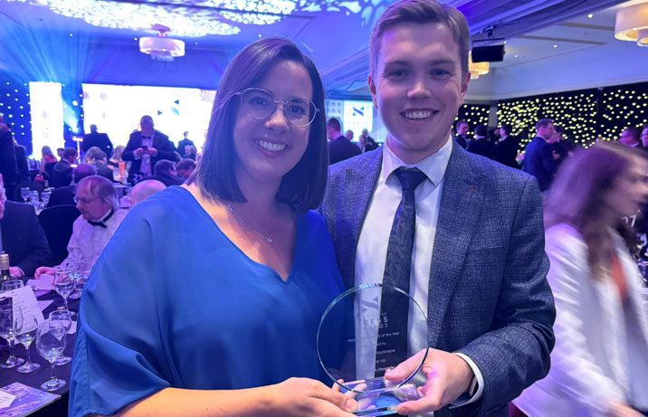 Cumnock Chronicle Editor Gillian Murphy and reporter Stuart Reid with their runner-up trophy.